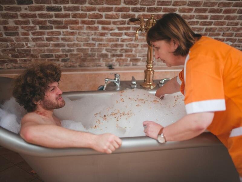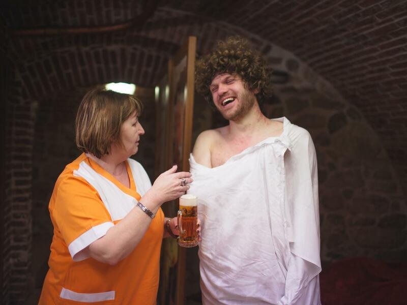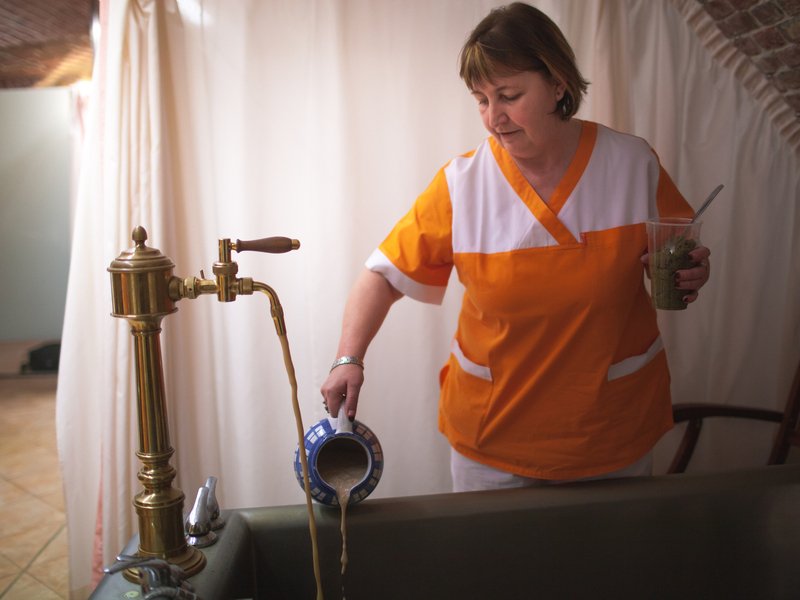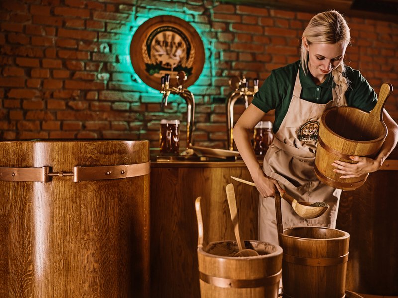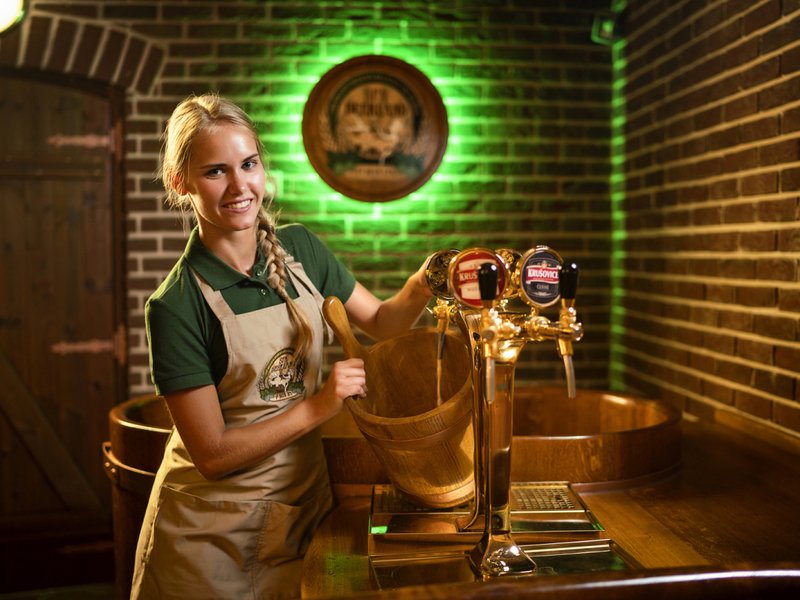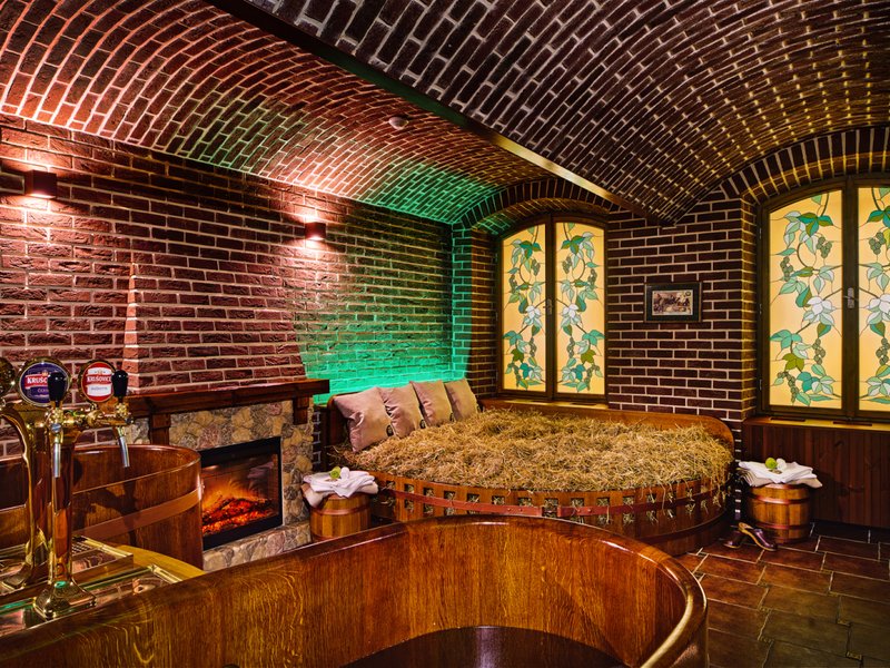 Rehabilitační vana je naplněna pečlivě vyváženou směsí minerální vody a tmavého koupelového piva. Na jejím povrchu se tvoří typická karamelově zbarvená pivní pěna, která přímo vybízí k okamžitému ponoření. Tento relaxační okamžik je balzámem nejen pro tělo, ale i pro duši. Lázeň je navíc obohacena o dávku živých kultur z pivovarských kvasnic a směs drcených bylin, což v kombinaci s pivem vytváří neobvyklou a velmi příjemnou vůni a účinky.