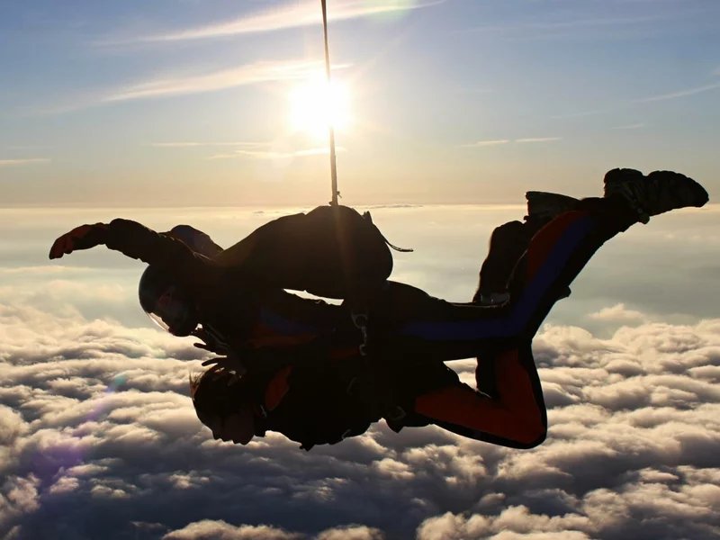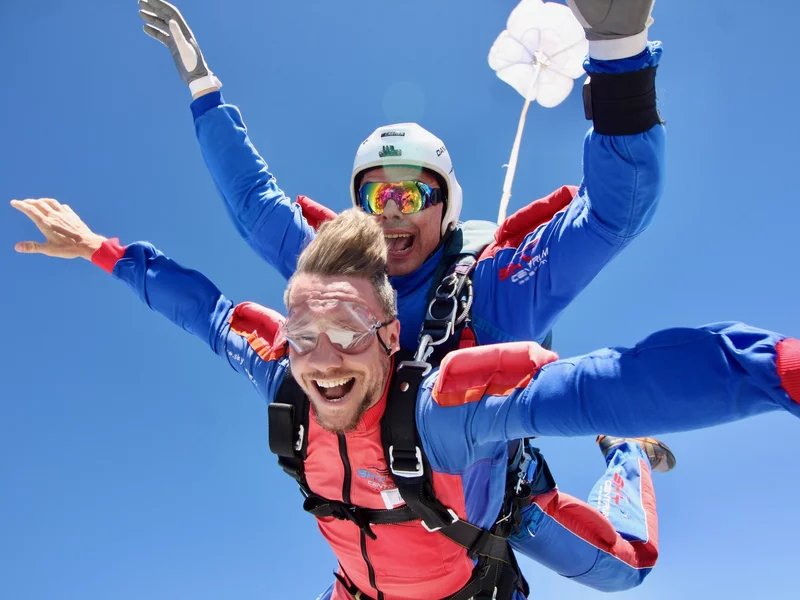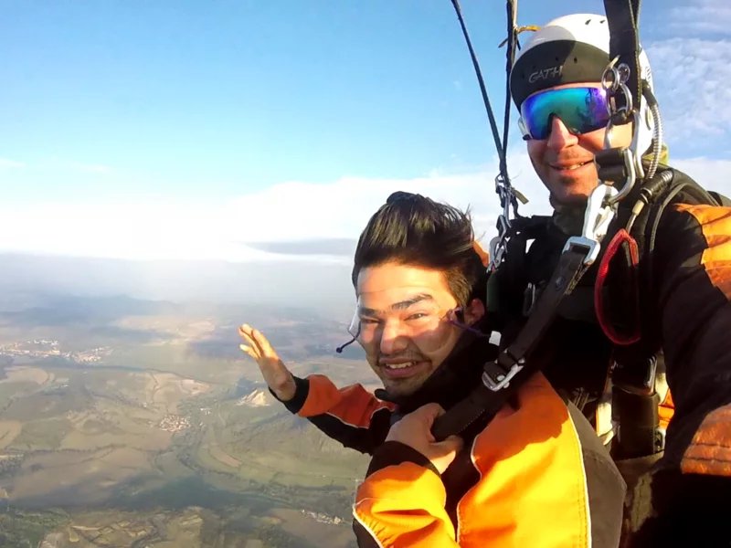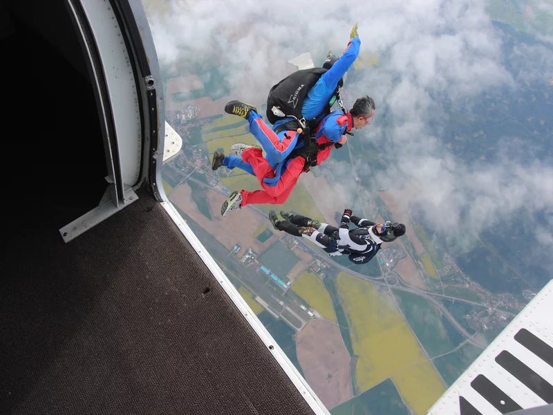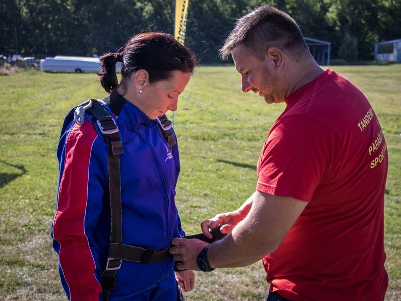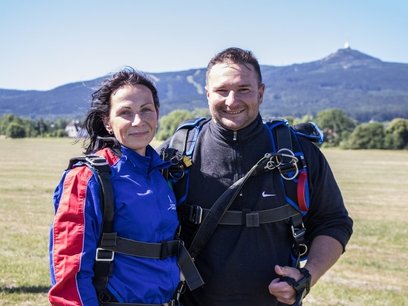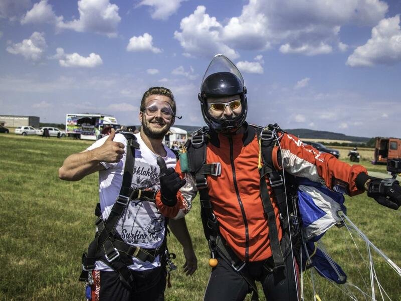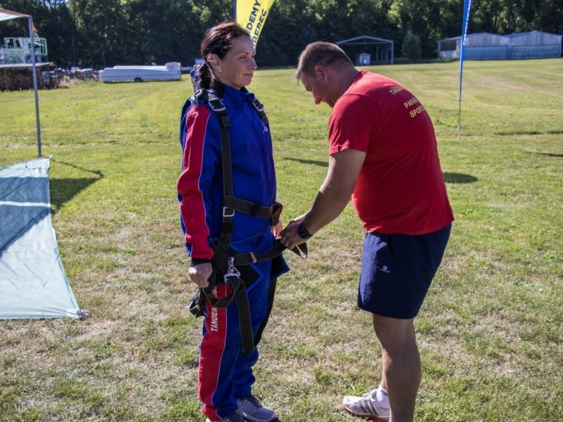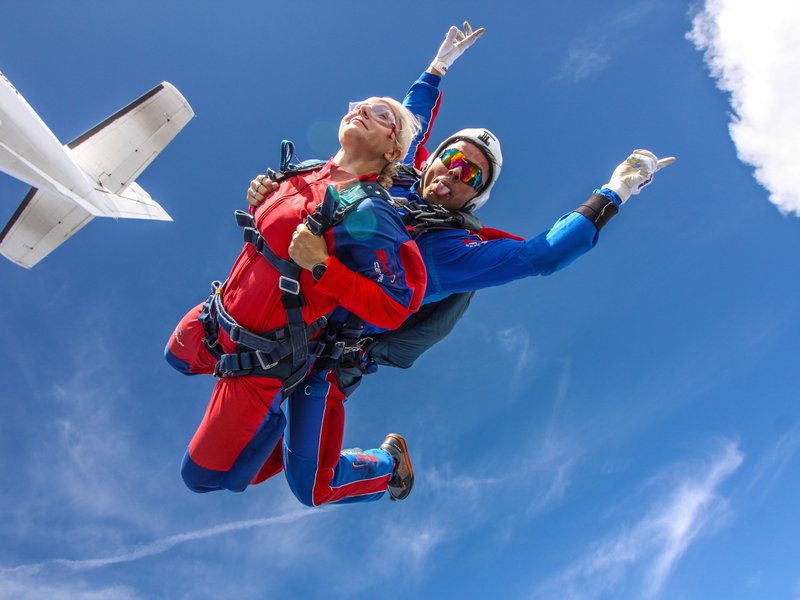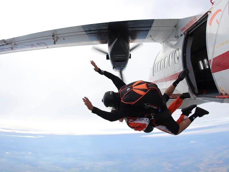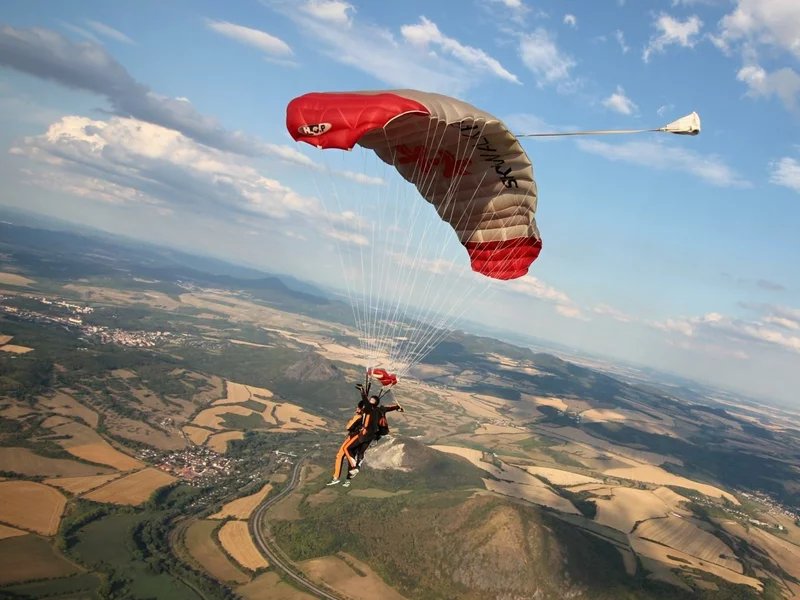 Tandemový seskok je jedinečná příležitost vyskočit si z letadla a zažít paráááádní euforii z volného pádu. Nejdříve proběhne krátká instruktáž, co při skoku dělat a co raději nedělat. Třeba se nedržet zuby nehty letadla. Pak přijde na řadu oblíkačka do výstroje a nástup do letadla. Veškeré obavy zmizí hned, když se dozvíte, že jeden instruktor zvládne klidně 387 seskoků za měsíc. A všechny bezpečně. Pak není žádný problém nastoupit do letadla a užít si vyhlídkový let vzhůru. Ve výšce 3 000 až 4 000 metrů se vyskočí a nastává očekávaný volný pád, který trvá zhruba jednu minutu v rychlosti až 200 km/h. Prostě paráda! Let s padákem zabere 10 až 15 minut a kochání krajinou je nezapomenutelné. Po dohodě s instruktorem lze vyzkoušet ovládání padáku a vzít let do vlastních rukou. Celý zážitek trvá přibližně 3 hodiny. Adrenalin koluje v žilách a po přistání je touha zkusit to znovu stále silnější. Kvůli velkému nárustu ceny paliv je možné, že bude na místě účtovaný palivový příplatek.