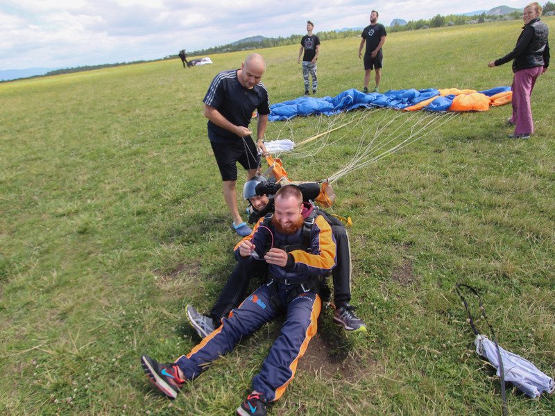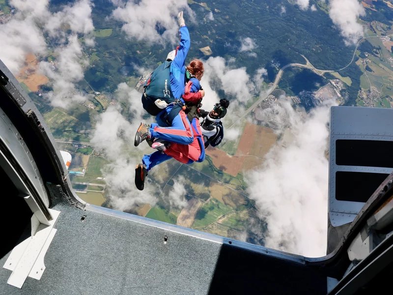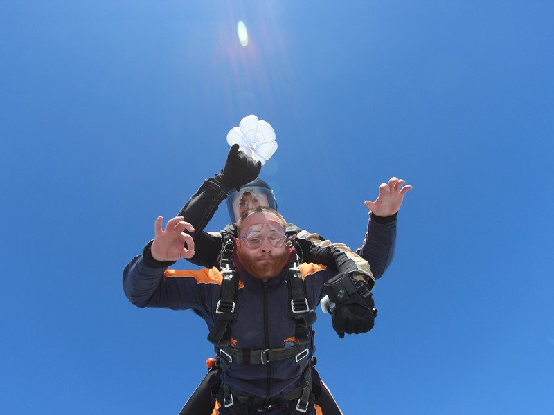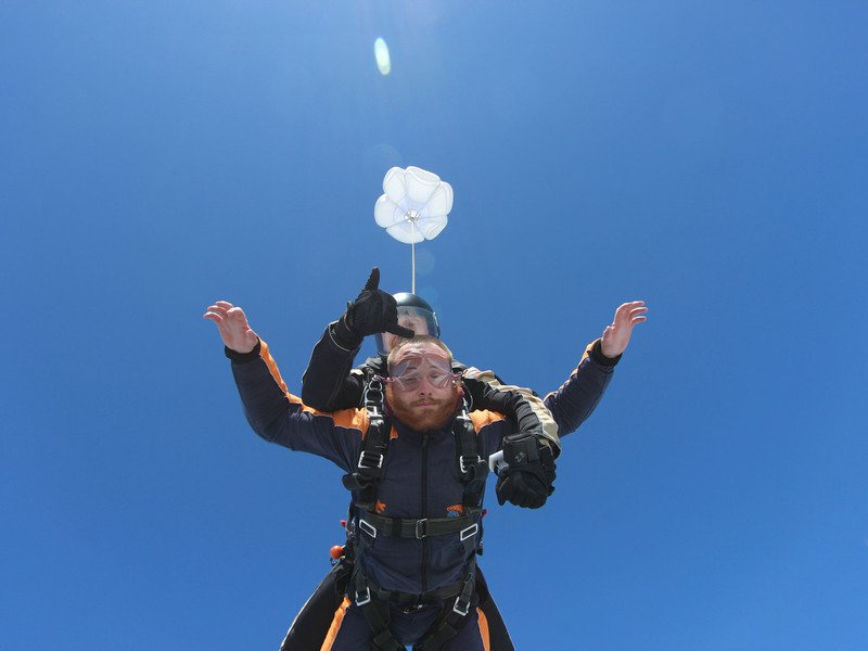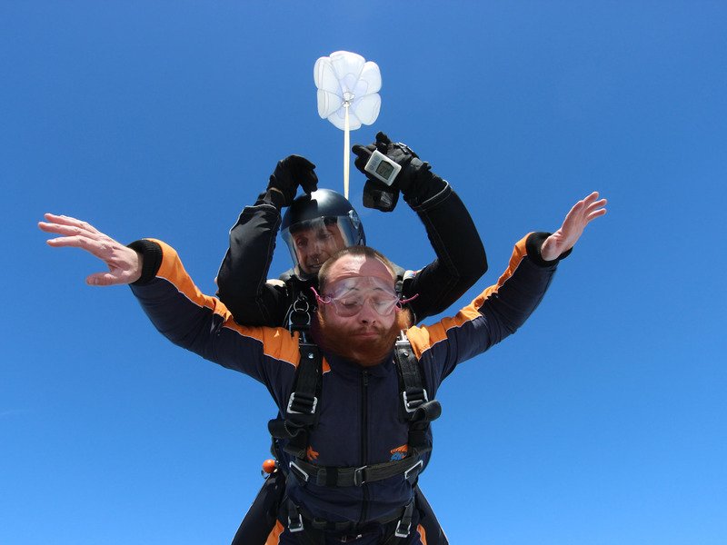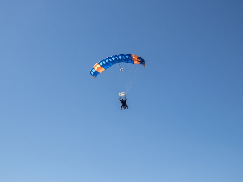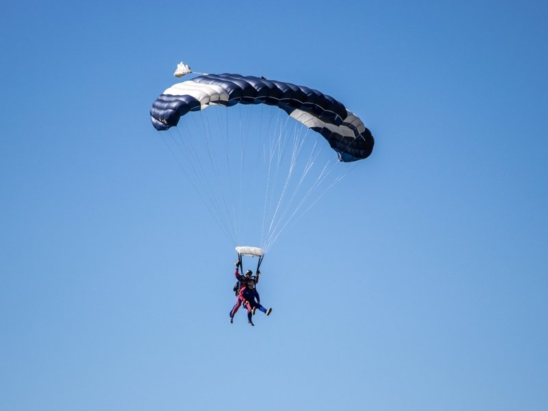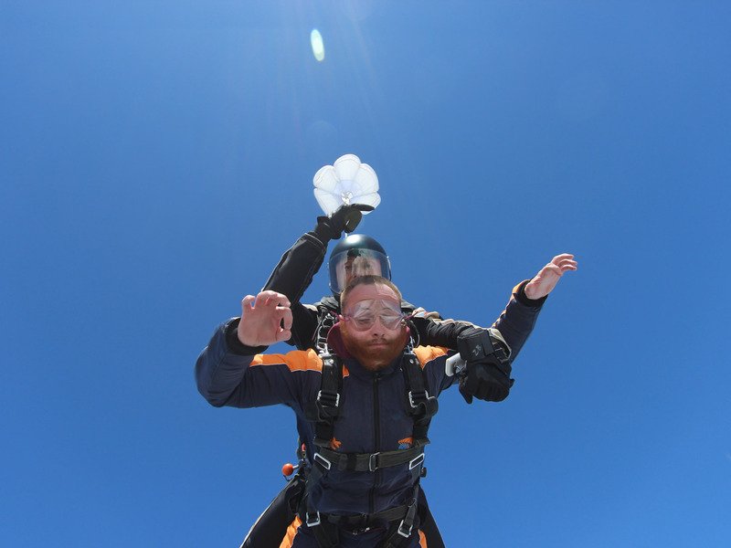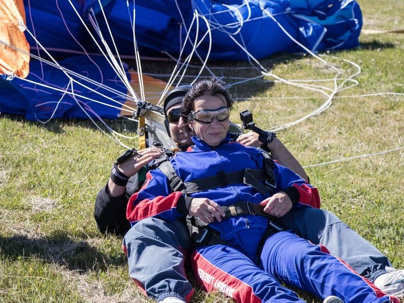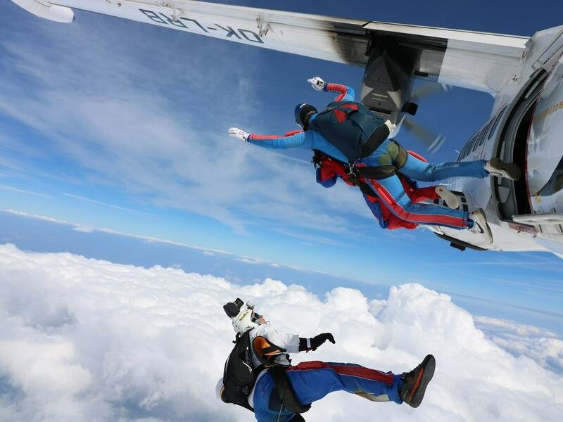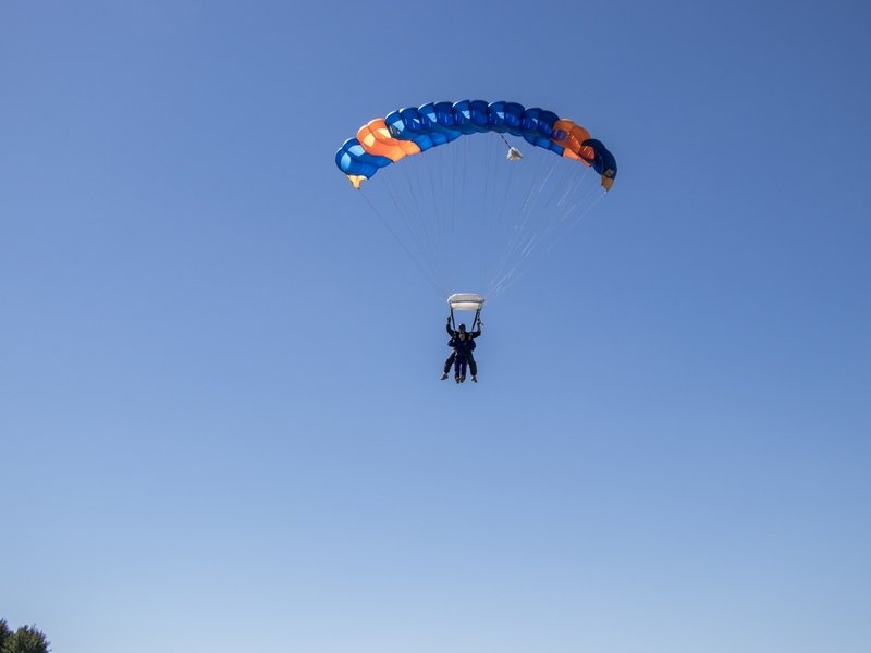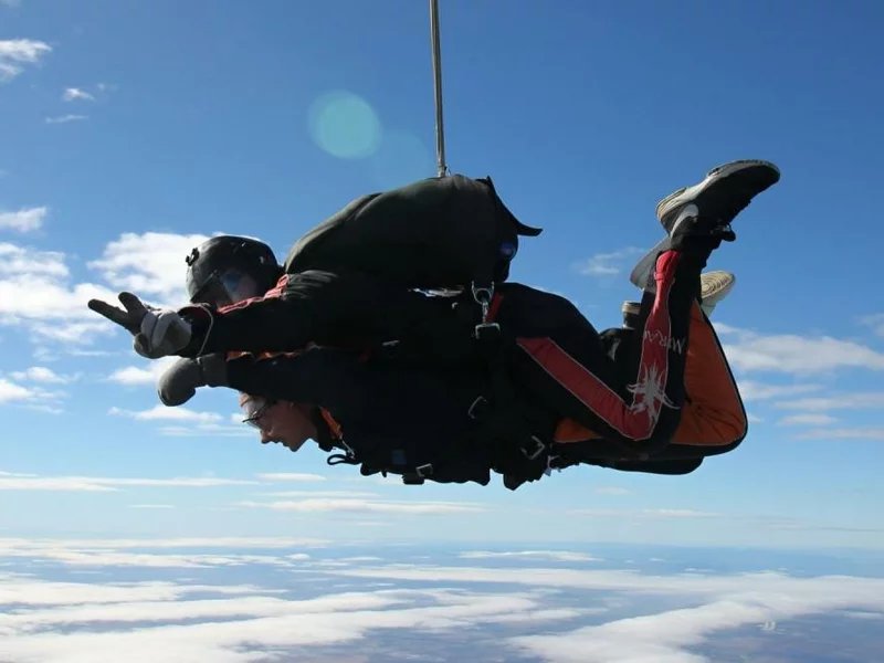 Tandemový seskok je jedinečná příležitost vyskočit si z letadla a zažít paráááádní euforii z volného pádu. Nejdříve proběhne krátká instruktáž, co při skoku dělat a co raději nedělat. Třeba se nedržet zuby nehty letadla. Pak přijde na řadu oblíkačka do výstroje a nástup do letadla. Veškeré obavy zmizí hned, když se dozvíte, že jeden instruktor zvládne klidně 387 seskoků za měsíc. A všechny bezpečně. Pak není žádný problém nastoupit do letadla a užít si vyhlídkový let vzhůru. Ve výšce 3 000 až 4 000 metrů se vyskočí a nastává očekávaný volný pád, který trvá zhruba jednu minutu v rychlosti až 200 km/h. Prostě paráda! Let s padákem zabere 10 až 15 minut a kochání krajinou je nezapomenutelné. Po dohodě s instruktorem lze vyzkoušet ovládání padáku a vzít let do vlastních rukou. Celý zážitek trvá přibližně 3 hodiny. Adrenalin koluje v žilách a po přistání je touha zkusit to znovu stále silnější. Kvůli velkému nárustu ceny paliv je možné, že bude na místě účtovaný palivový příplatek.