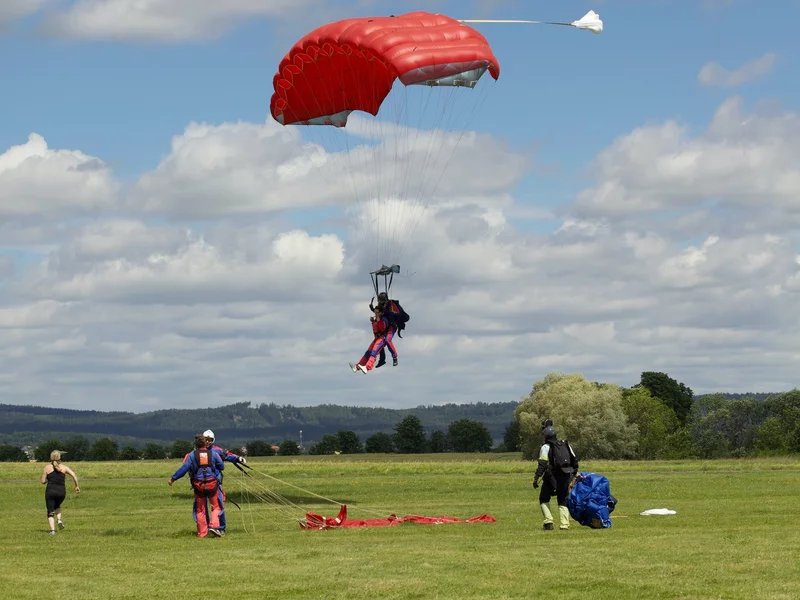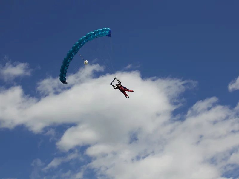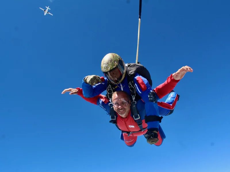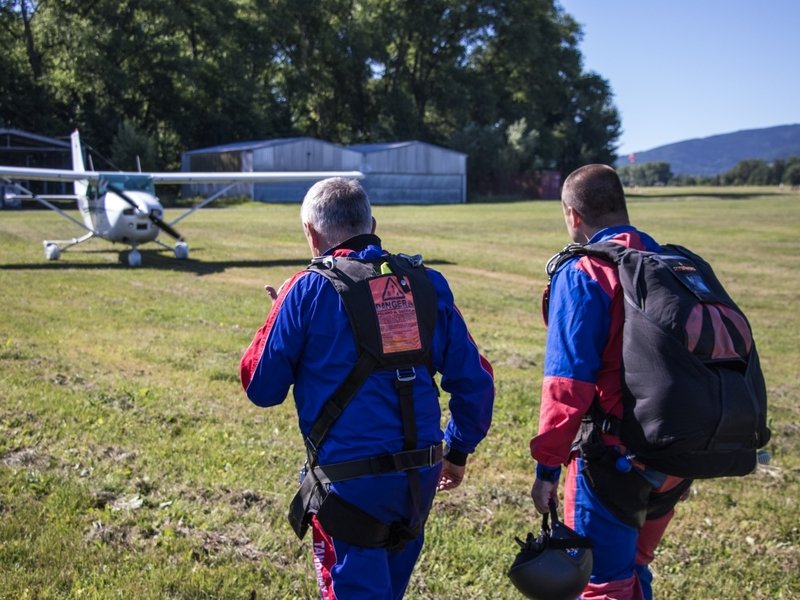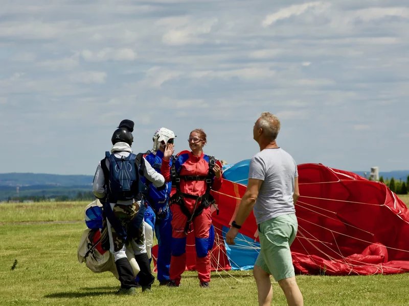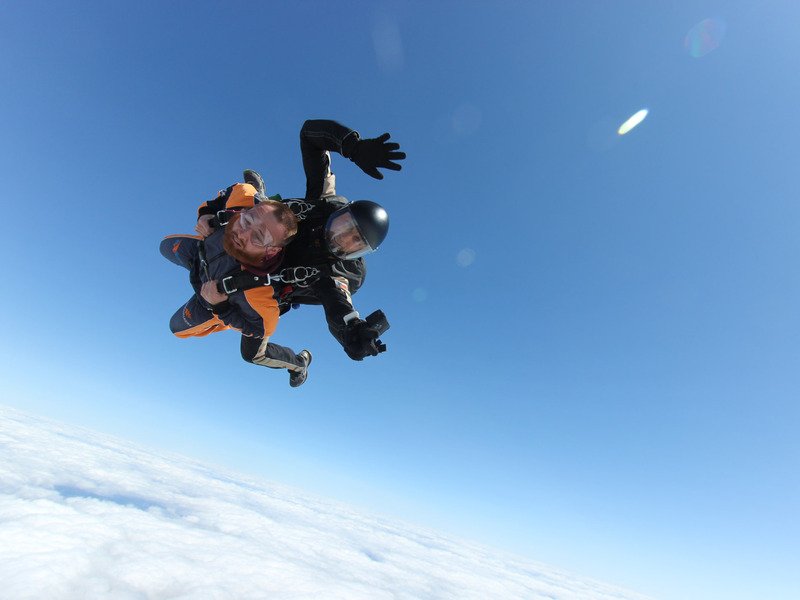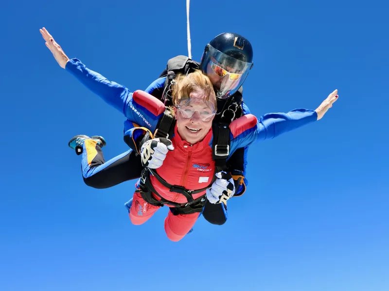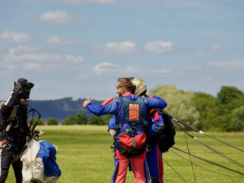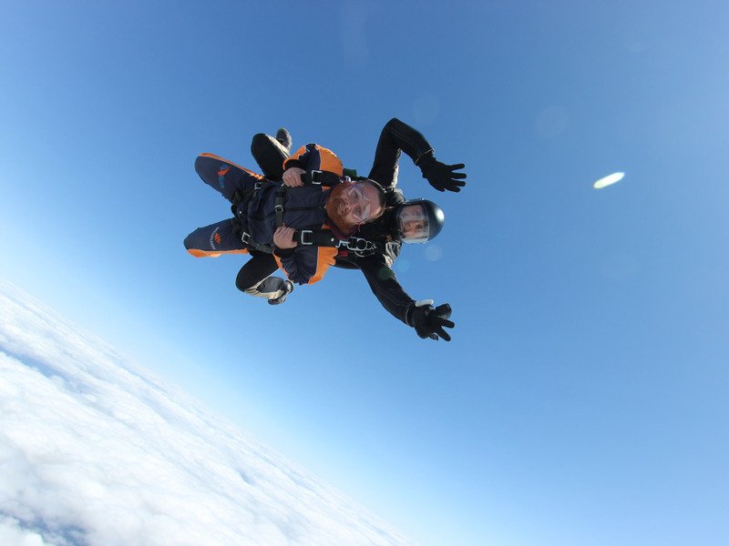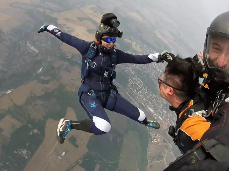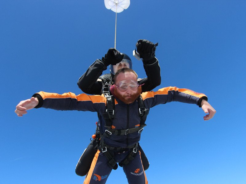 Tandemový seskok je jedinečná příležitost vyskočit si z letadla a zažít paráááádní euforii z volného pádu. Nejdříve proběhne krátká instruktáž, co při skoku dělat a co raději nedělat. Třeba se nedržet zuby nehty letadla. Pak přijde na řadu oblíkačka do výstroje a nástup do letadla. Veškeré obavy zmizí hned, když se dozvíte, že jeden instruktor zvládne klidně 387 seskoků za měsíc. A všechny bezpečně. Pak není žádný problém nastoupit do letadla a užít si vyhlídkový let vzhůru. Ve výšce 3 000 až 4 000 metrů se vyskočí a nastává očekávaný volný pád, který trvá zhruba jednu minutu v rychlosti až 200 km/h. Prostě paráda! Let s padákem zabere 10 až 15 minut a kochání krajinou je nezapomenutelné. Po dohodě s instruktorem lze vyzkoušet ovládání padáku a vzít let do vlastních rukou. Celý zážitek trvá přibližně 3 hodiny. Adrenalin koluje v žilách a po přistání je touha zkusit to znovu stále silnější. Kvůli velkému nárustu ceny paliv je možné, že bude na místě účtovaný palivový příplatek.