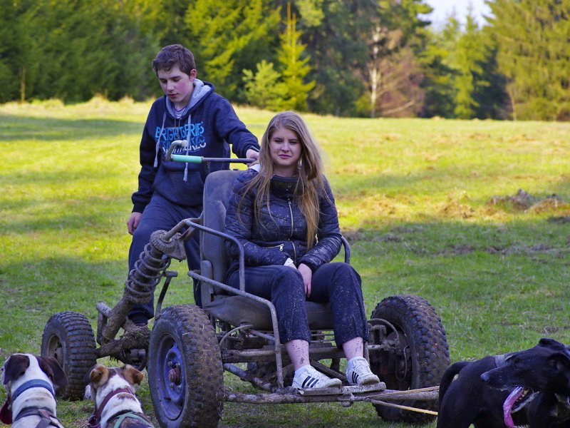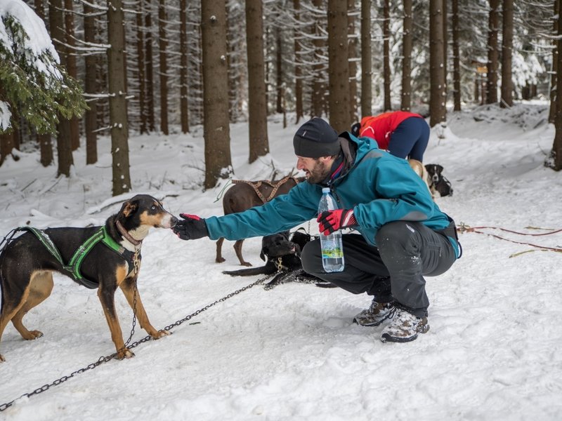 Váš zážitek začne pohodlným transportem skútry, nejčastěji z Pece pod Sněžkou nebo Vrchlabí, přímo do místa začátku jízdy. Zde se seznámíte s našimi psy – Alaskan a European huskies, kteří byli speciálně vyšlechtěni na Aljašce a v Norsku pro dlouhé traily v divočině. Jejich obdivuhodná chuť pracovat v zápřahu, nenáročnost a nekonfliktnost vás jistě nadchne.