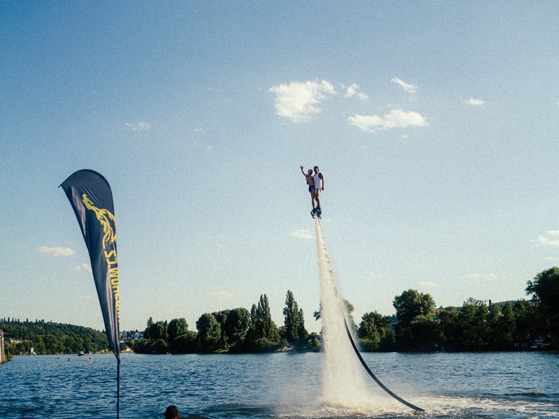 Připrav se na vzlet! Než se vzneseš na flyboardu, projdeš rychlou instruktáží a oblékneš si neopren. O zbytek se postará zkušený instruktor, takže se můžeš plně soustředit na to, abys si létání nad vodou naplno užil.