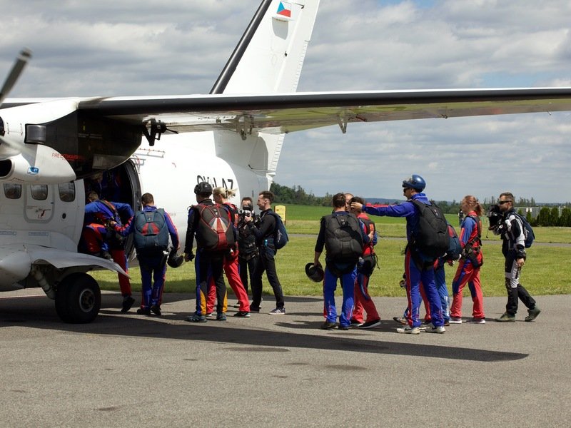 Vše začíná krátkou instruktáží o tom, co vás čeká a čemu se naopak vyhnout (třeba křečovitému držení letadla!). Následuje oblékání do speciální výstroje a nástup na palubu.