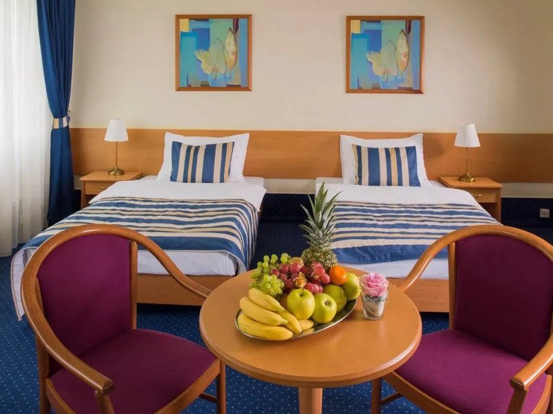Na pokoji na vás čeká pohodlná manželská postel (s možností oddělených lůžek), vlastní koupelna se sprchou či vanou a WC. Pro vaše pohodlí nechybí fén, TV se satelitním příjmem a minibar.