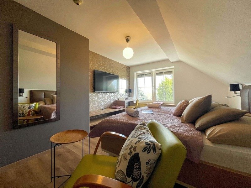Ubytováni budete v komfortních dvoulůžkových pokojích typu Delux Superior na 2 noci. Každý pokoj je oázou klidu, vybavenou pohodlnou dvoulůžkovou postelí se zdravotní matrací a širokým výběrem zdravotních polštářů. K vašemu pohodlí dále poslouží TV, minibar plný alkoholických i nealkoholických nápojů (včetně lokálních moštů a vín), fén, rychlovarná konvice, klimatizace a individuálně regulovatelné vytápění.