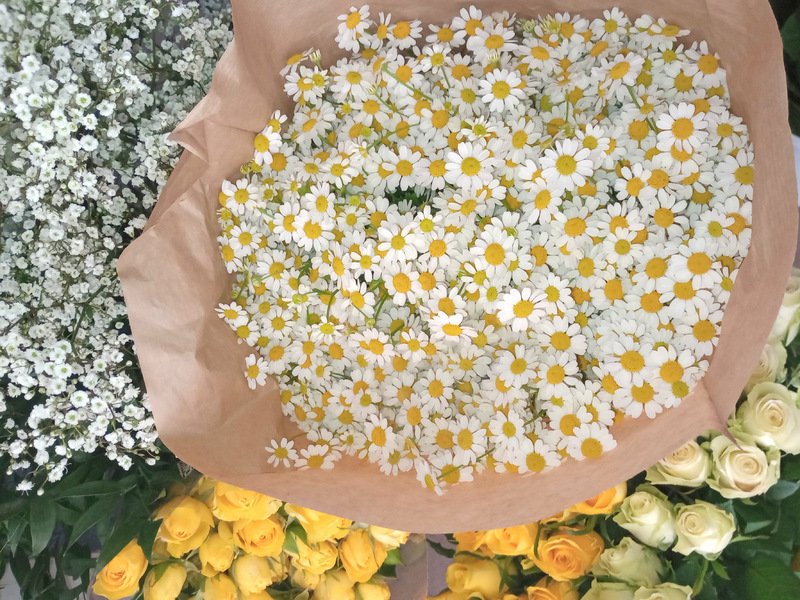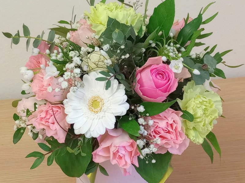 vlastnoručně vytvořené květinové aranžmá, které si odnesete domů,