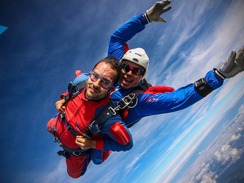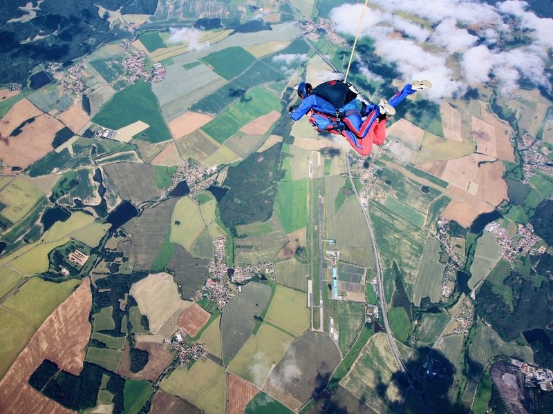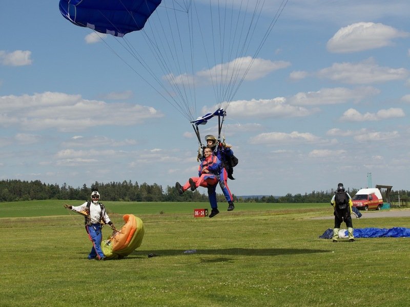 Ve výšce 3 000 metrů nadejde ten okamžik! Vyskočíte a propadnete se do minutu dlouhého volného pádu rychlostí až 200 km/h – čistá extáze! Následuje klidnější, avšak dechberoucí 10 až 15 minutový let s padákem, při kterém si užijete úchvatné výhledy na krajinu. Pod dohledem instruktora si dokonce můžete zkusit řízení padáku a vzít let do vlastních rukou! Celý zážitek vám zabere přibližně 3 hodiny.