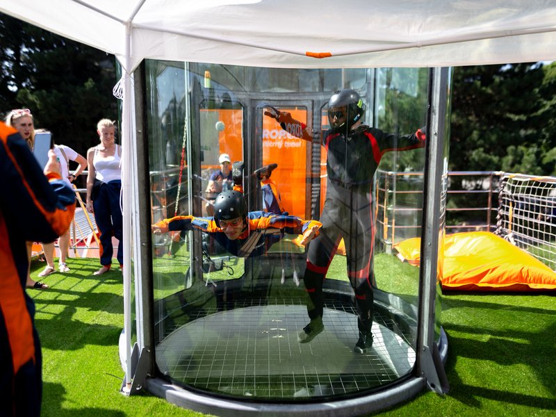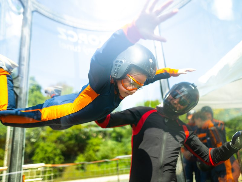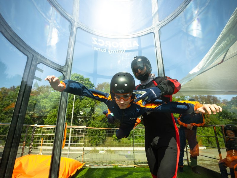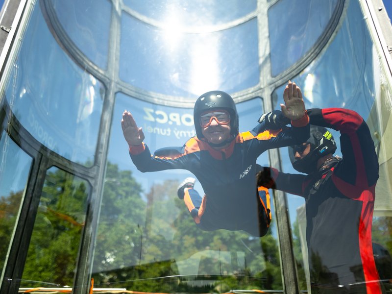 Nejprve čeká účastníky instruktáž od kvalifikovaných instruktorů. Zapůjčení ochranného vybavení je v ceně - každý letec nafasuje kombinézu, helmu a ochranné brýle. A hurá k letové komoře! Ta je uzavřena, takže nehrozí vypadnutí z proudu vzduchu. Letec je po celou dobu pod dohledem zkušeného instruktora. V krátkém čase se každý naučí ovládat své tělo ve větrném proudu.