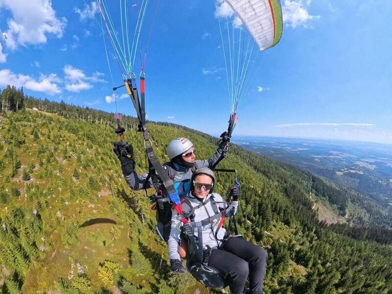 Adrenalinový zážitek začíná přesunutím na startoviště, kde letec dostane podrobnou instruktáž o všem potřebném k letu. Pak už následuje přivázání k pilotovi, pár rychlých kroků a letí se! O řízení paraglidu i hladké přistání se postará zkušený paraglidista.
