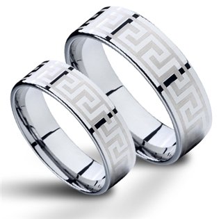 Snubní prsten z wolframu NWF1056 Snubní wolframový prsten v provedení vysoký lesk. Prsten je zdoben řeckým vzorem. Wolfram je v současnosti nejtvrdší a nejodolnější kov, používaný k výrobě šperků. Wolframu je 10 krát tvrdší než 18ti karátové zlato a… 5 krát tvrdší než ocel … a 4 krát tvrdší než Titan. Stupeň tvrdosti wolframu se pohybuje mezi 8-9 na stupnici tvrdosti (diamanty mají tvrdost 10 - nejvyšší na této stupnici). Proč je to toto důležité? Vysoká tvrdost wolframu zaručuje trvalý lesk šperků a jeho absolutní odolnost proti poškrábání. Rytinu do wolframových snubních prstenů lze provést pomocí speciálního typu laseru
