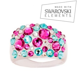 Plastový prsten SWAROVSKI® elements, barva: Pink/Turquois