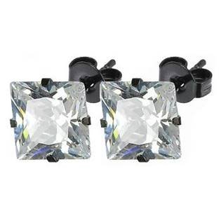 Černé ocelové náušnice - zirkony 6 x 6 mm - OPN1418